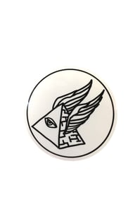 The Zion Wetsuits all seeing eyed pyramid with wings encased by a thin circle of convolution on vinyl. Now available to slap on your sled, steed or self!